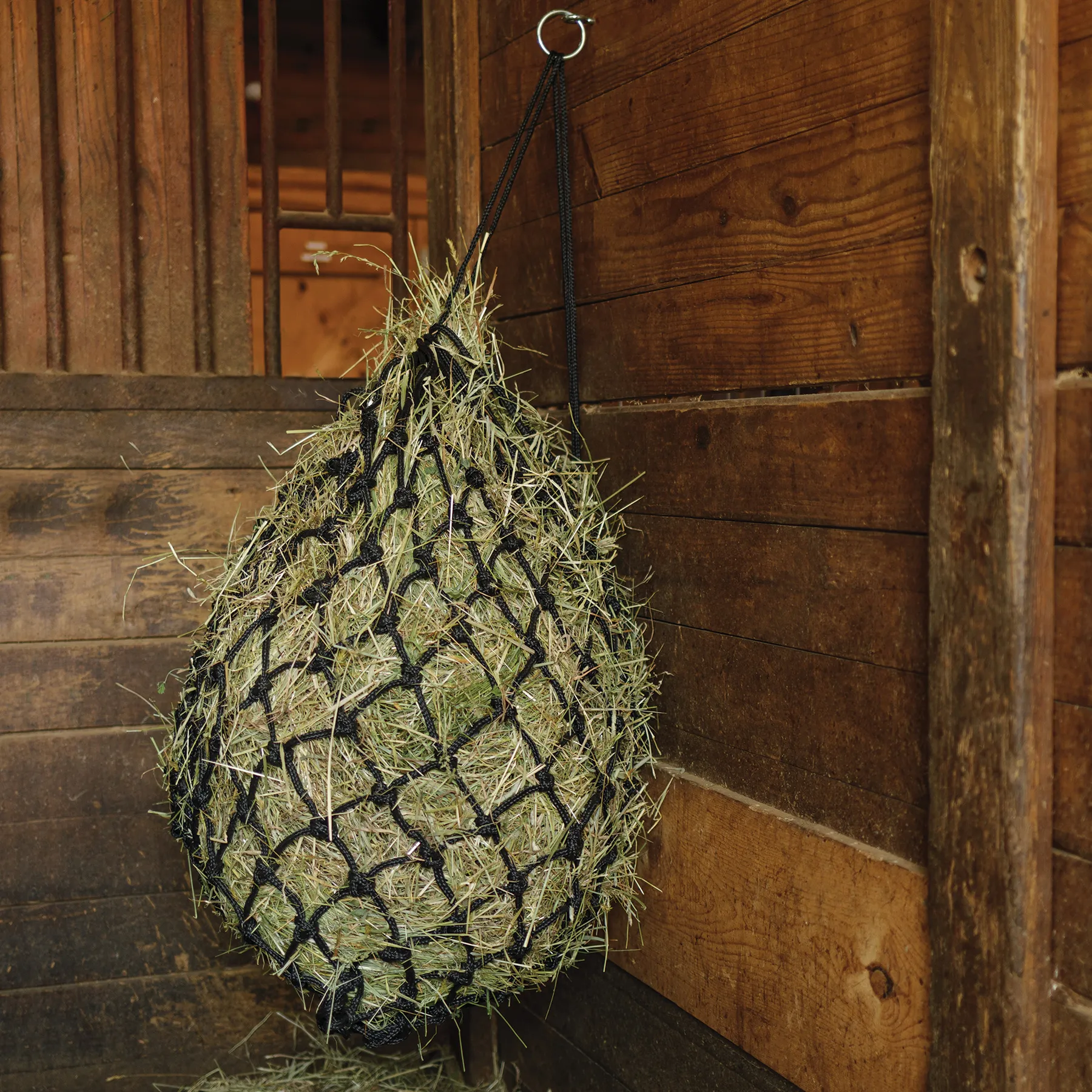 This extra thick rope hay net has a large capacity to keep your horse in front of hay longer. The extra strength poly rope is 3x thicker than standard hay nets and more durable to last longer.