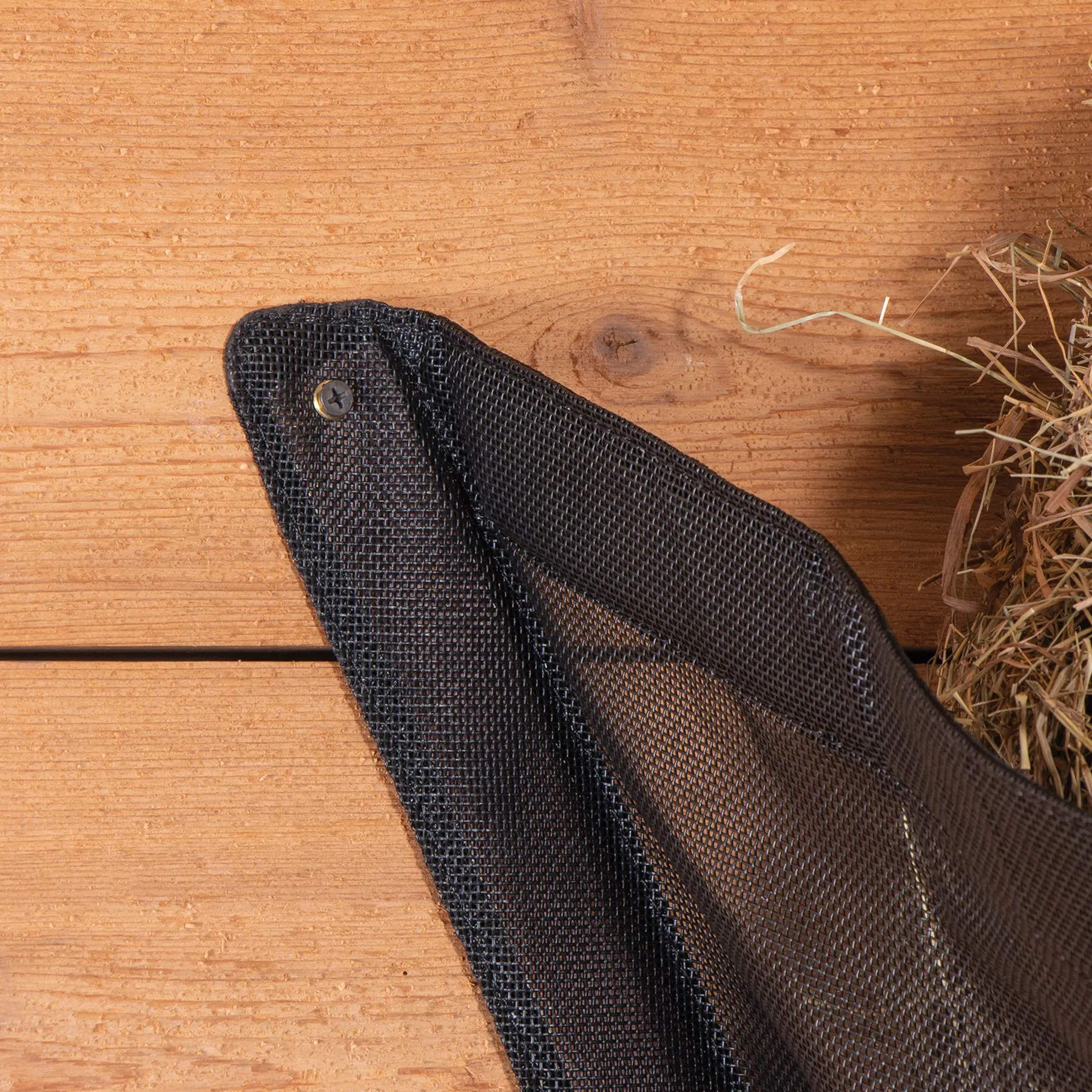 Easy to use corner mounted mesh panel is great for keeping hay in one area of the stall, preventing the loss of hay to manure and urine, or being tracked around the stall. 40″ H X 45″ top width X 13″ bottom width.