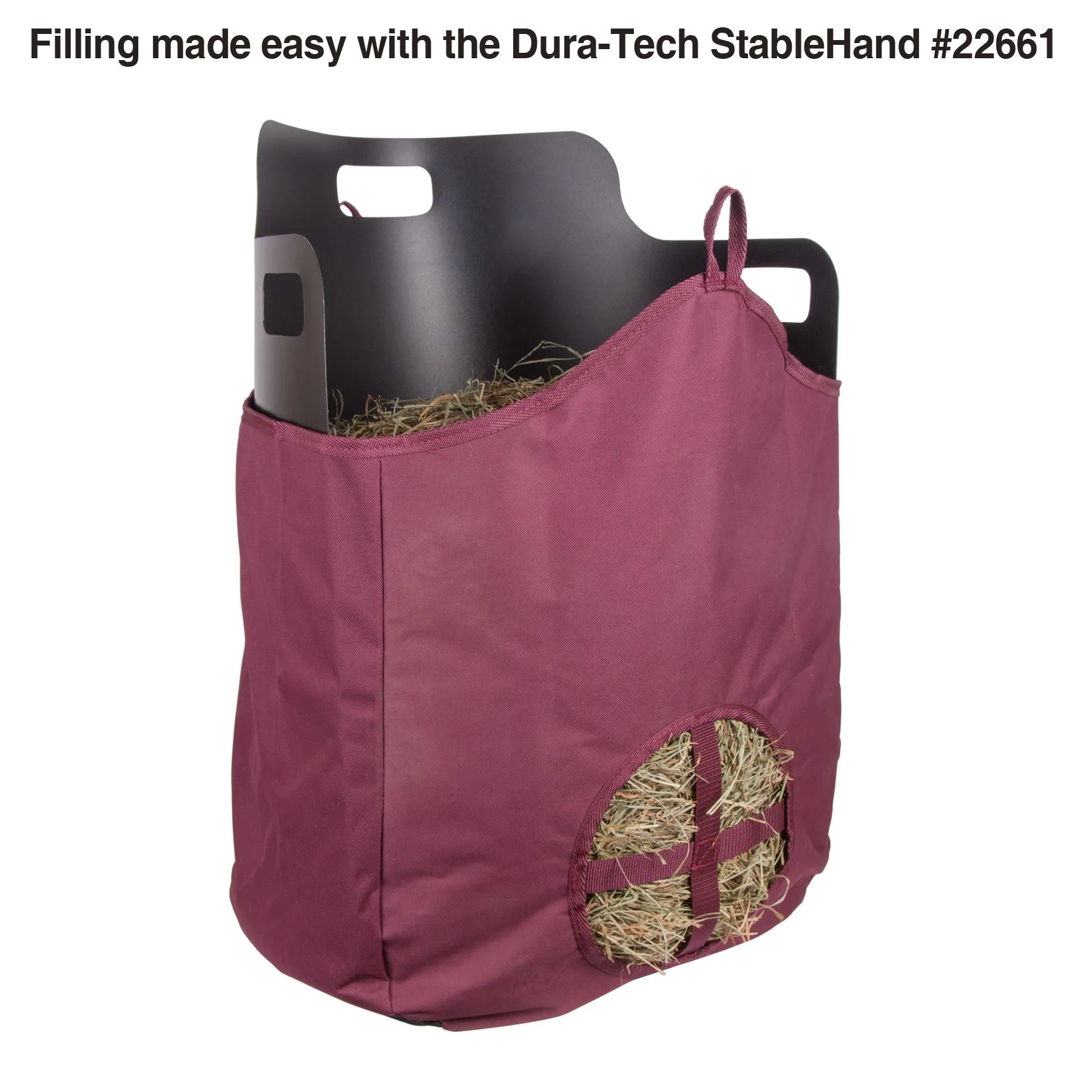 The 2 flake capacity hay bag has an 8″ diameter divided feeder hole and is an economical method of aiding digestion by slowing consumption and saving money by minimizing hay waste. This durable hay bag is perfect for entertaining horses between classes, relieving stall bound boredom and getting horses to relax while trailering.
