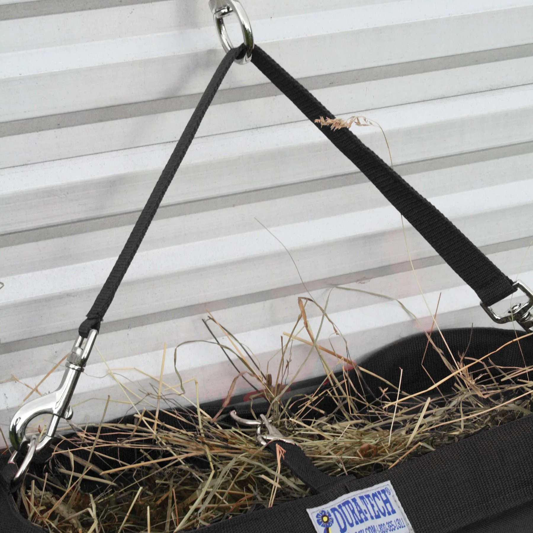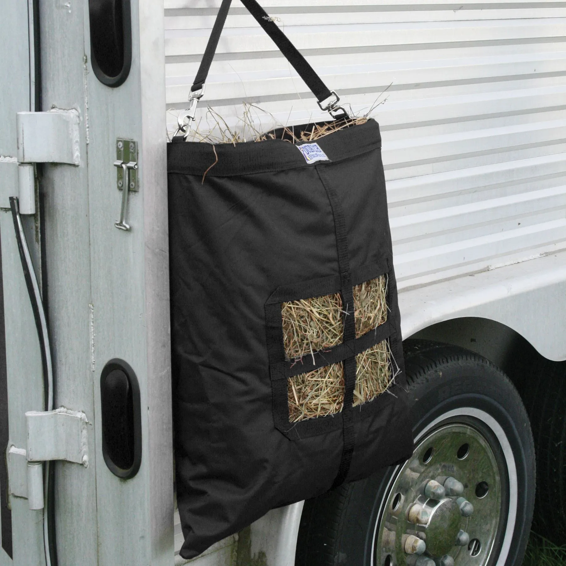 This durable 800 denier nylon feeder has a smaller load capacity which is perfect for keeping horses engaged and happy while trailering or to help ease stall boredom. Divided feeder holes allow for slowing hay consumption, limiting hay waste and helping improve digestion.
