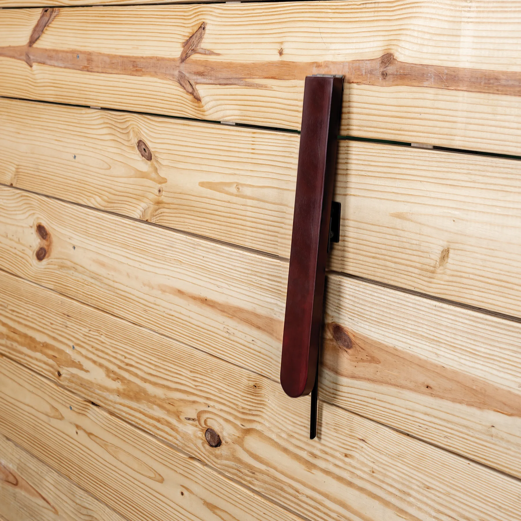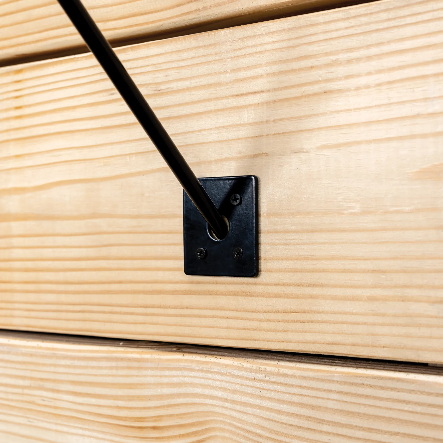 A beautiful combination of solid wood and metal, the Easy-Up® Collapsible Wooden Wall Mounted Saddle Rack will stand out in your tack room, aisle way, or grooming stall. The wooden saddle rack fits English and Dressage saddles and simply drops flat against the wall when not in use. Bring classic elegance into your barn with this beautiful rack.