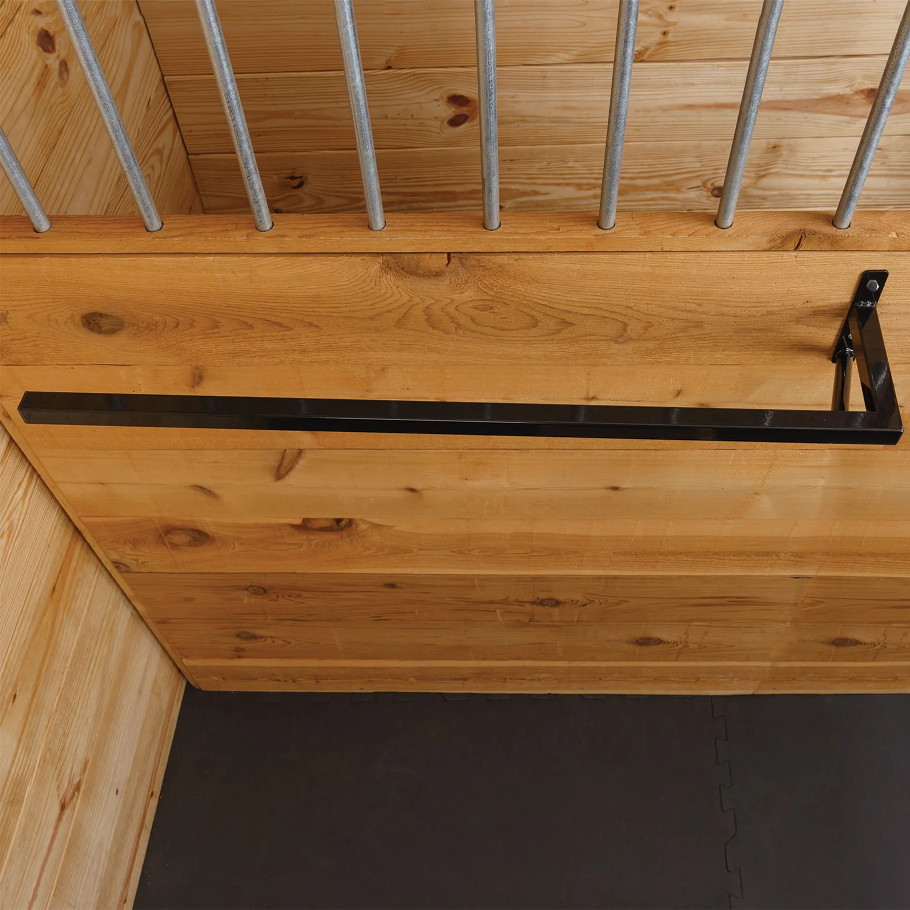 Experience the convenience of the Easy-Up® Open-Ended Blanket and Saddle Pad Bar. This unique product is the first of its kind, designed to make adding and removing blankets and pads from your rack easier than ever before. The open-ended design on the left side allows easy slide-on blanket storage, eliminating the need to stuff items between the bar and wall. With a sturdy 1″ tubing that extends 6″ from the wall, this product offers ample space for storing more blankets and sheets. It’s built with a diagonal support brace to provide optimum support for heavy blankets.