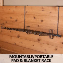 A portable collapsible horsewear stall bar is the perfect hanger to take to shows to keep your horse’s blanket, sheets, slicker or coolers neat on their stalls.