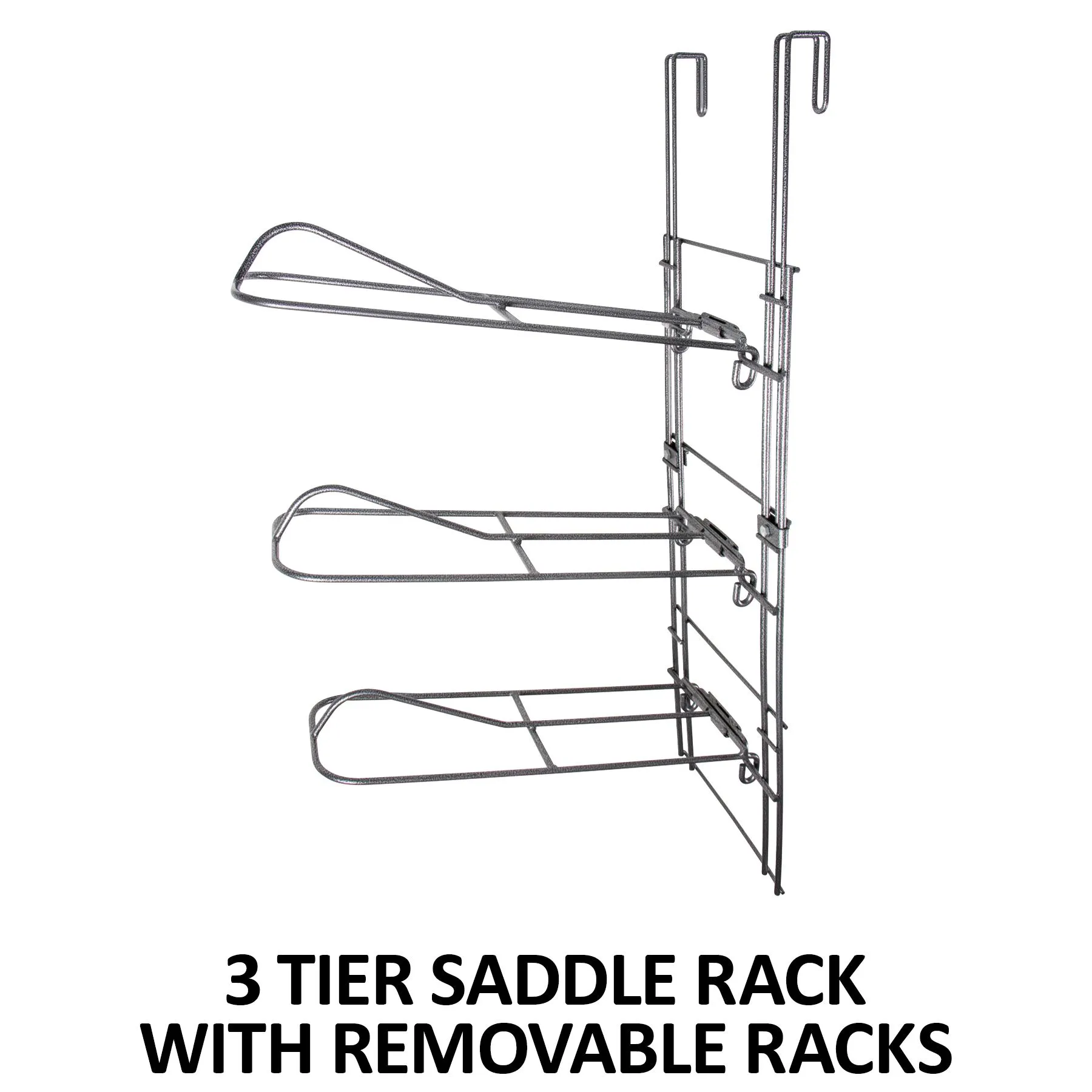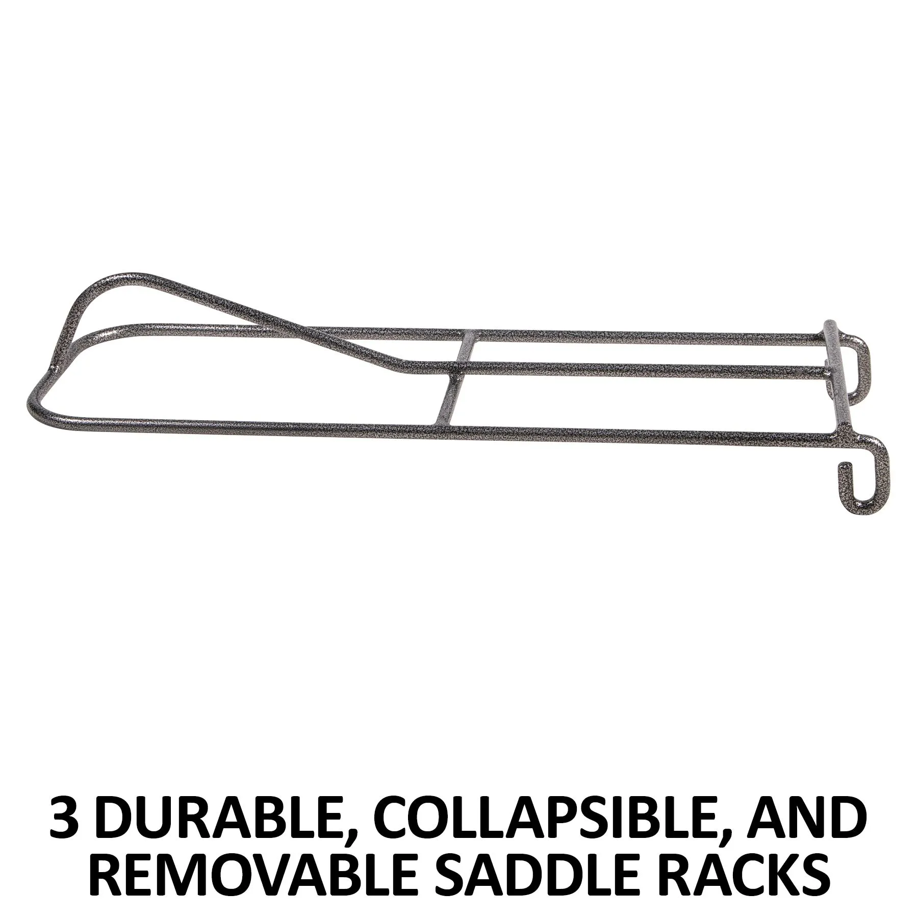 Keep your tack room extra organized with the 3-Tier Drop-Down Saddle Rack. This versatile rack’s main frame allows you to remove or drop down the saddle racks to save space. It not only offers three spacious saddle racks but also features a curved pommel hump for extra support. It is designed to prevent slipping or twisting, so it won’t interfere with your saddle flocking.