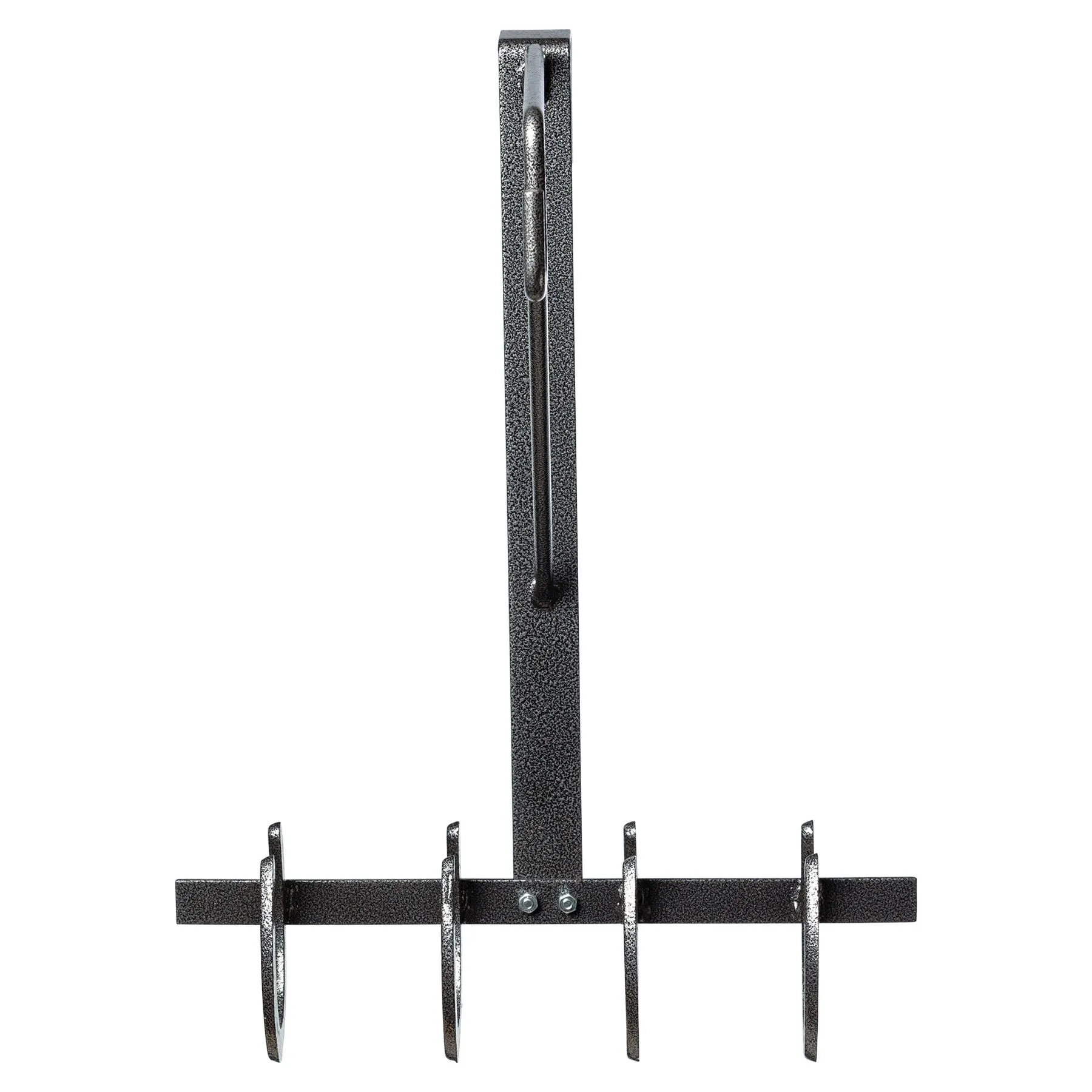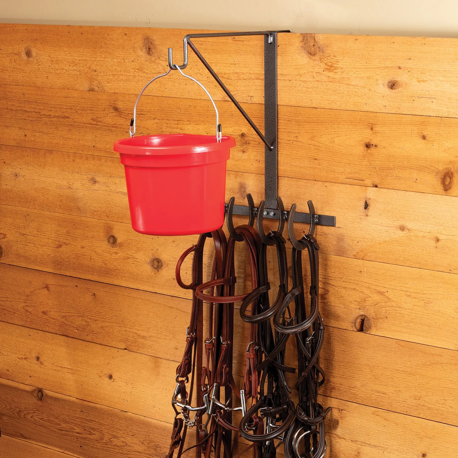 Heavy duty large utility hanger fits over stall walls up to 2 1/4″ thick. The additional length on this utility hanger makes items easier to access over tall stalls, and it fits perfectly on pipe rail fencing or gates.