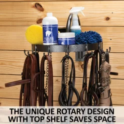- Utility hanging comes with four horseshoe hangers on the back for tack