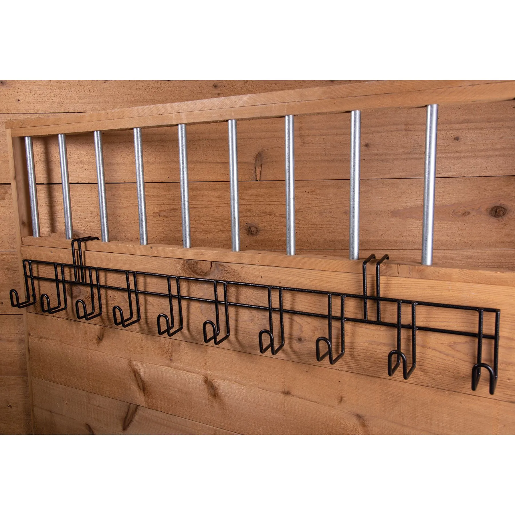 - Hang numerous bridles, halters, leads, whips, girths etc.