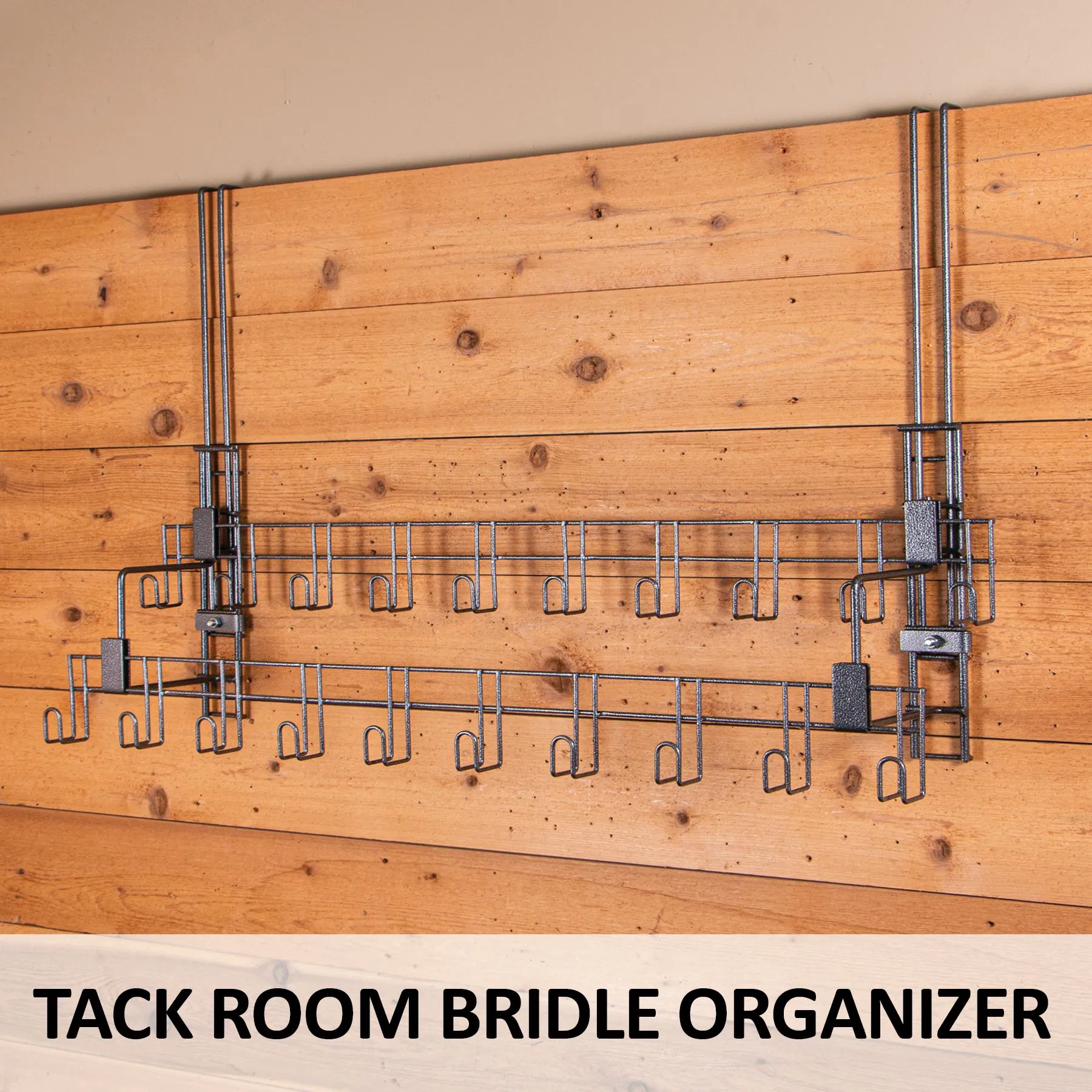 An excellent tack organizer! This multi-level bridle rack allows you to easily find the tack you need, whether at a horse show or in your tack room. Ideal for medium sized barns, training stables or setting up at shows. You can easily identify the tack you need with this tiered rack system. 8 1/2″ deep x 45″ wide.