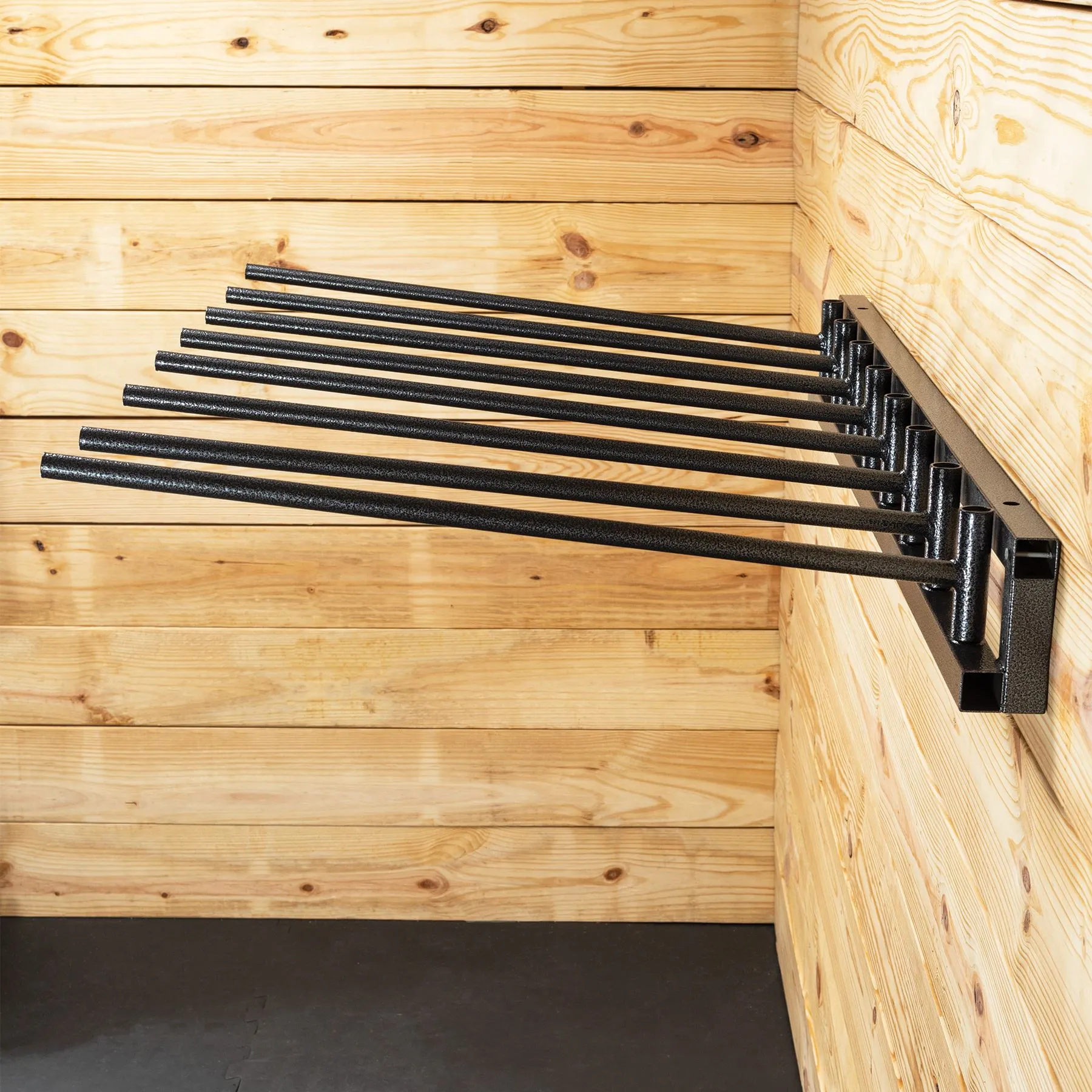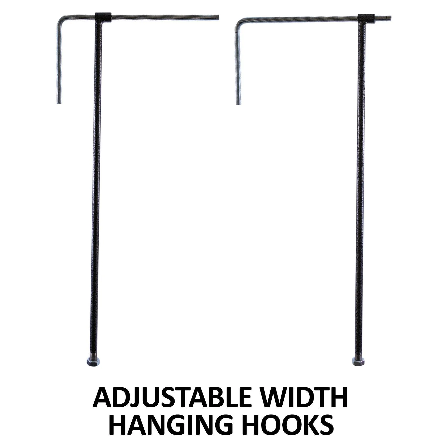 A heavy-duty 1 1/4″ frame with 8 – 3/4″ thick swing arm rods can be mounted in your barn or taken to shows and hung with adjustable hangers. It can easily support the heaviest english or western pads, blankets and sheets, and coolers. English pads or sheets. Measures 48″ long x 5″ tall.