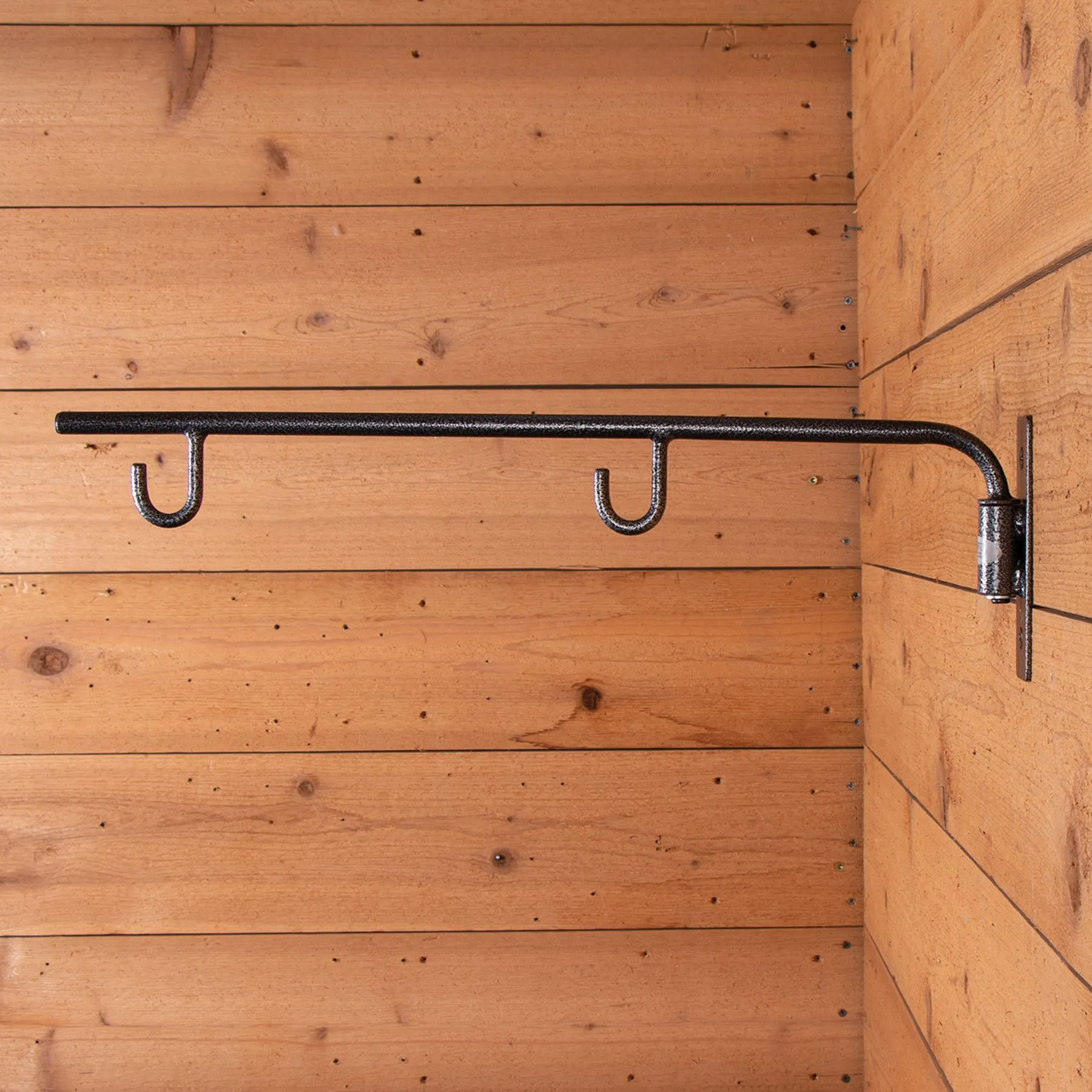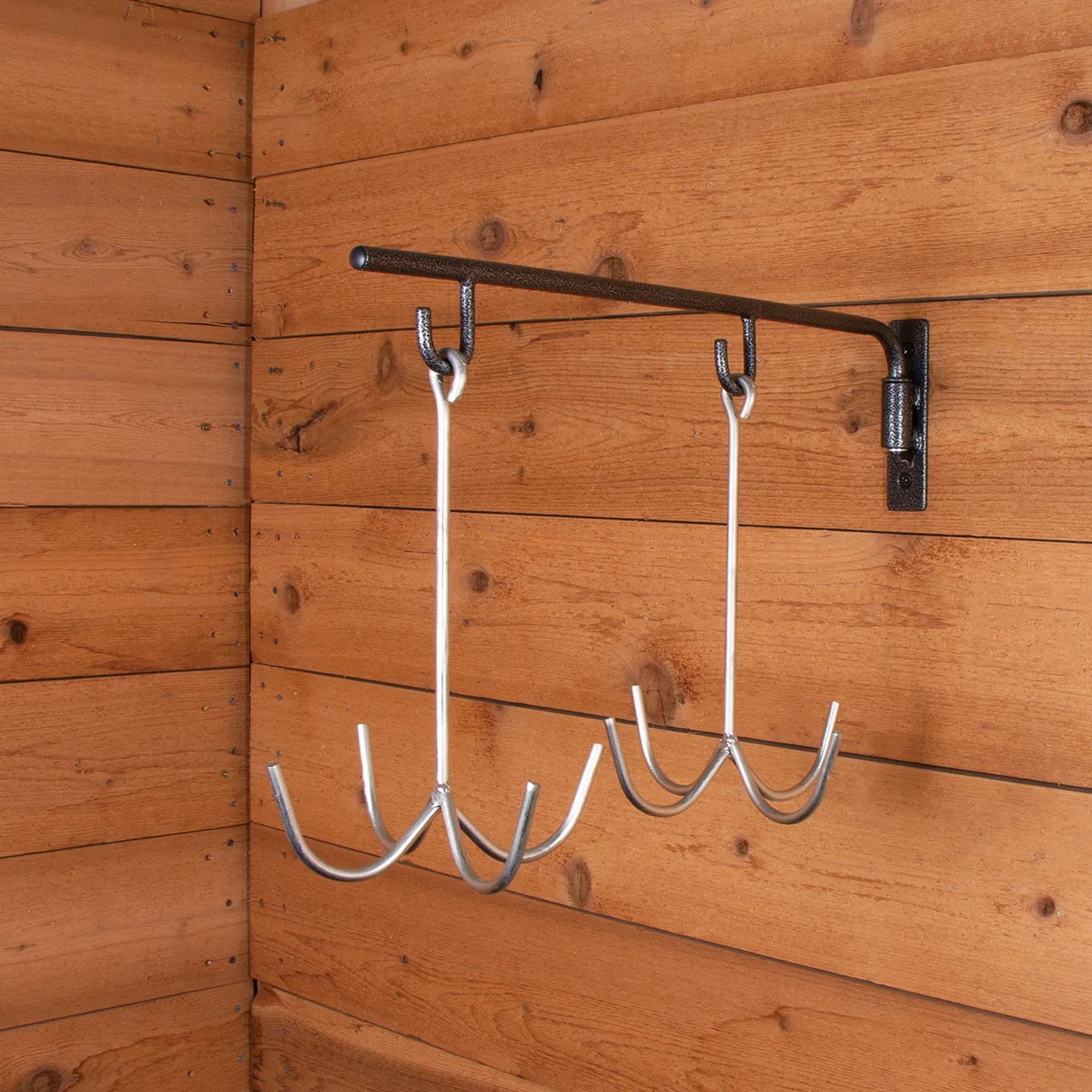 Unique utility hanger that swivels left and right to store your items out of the way when not in use. Great for use with 4-prong hooks, keeping a variety of items neatly organized.