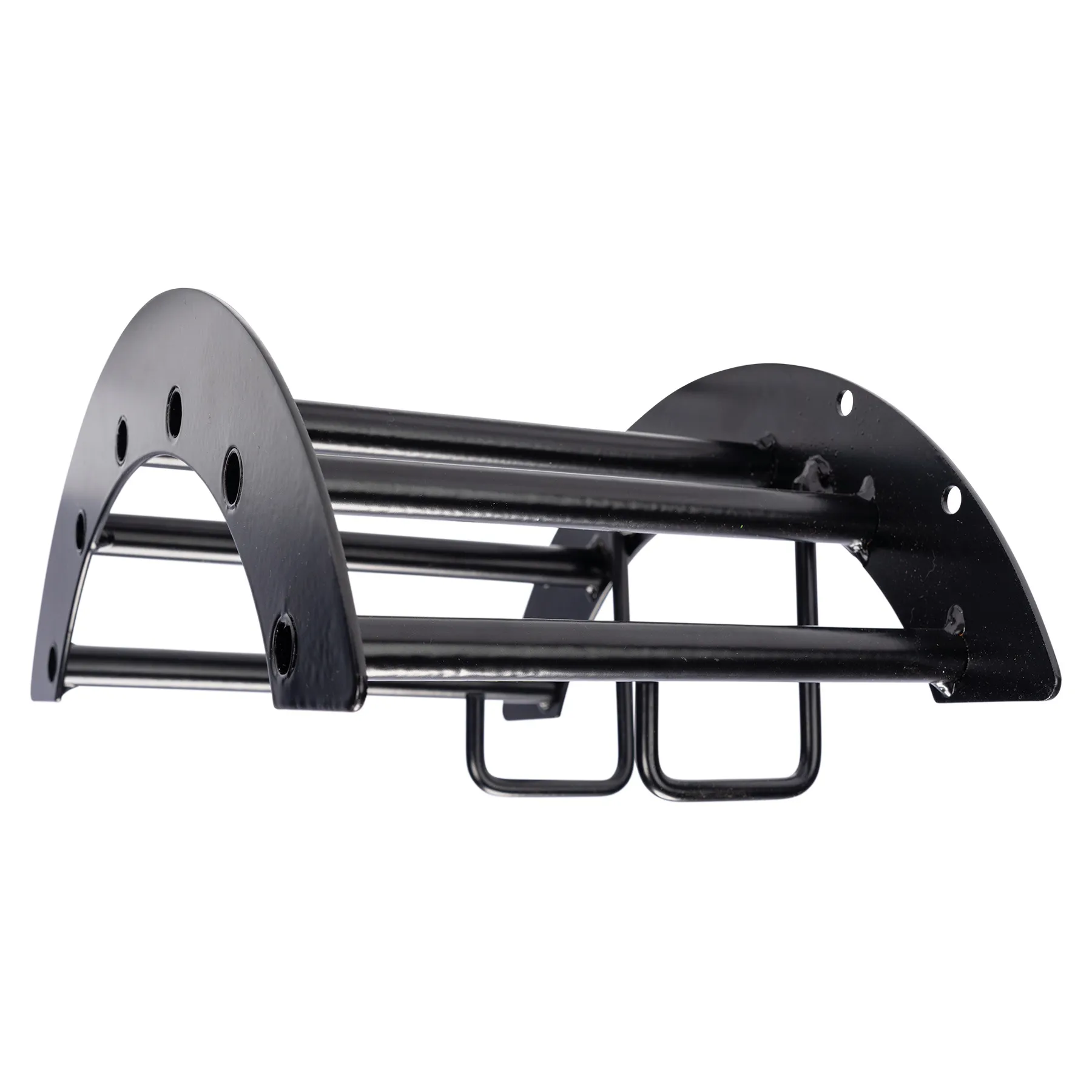 Keep your girths and tack organized without taking up much space. With its curved design, the Easy-UpĀ® Girth and Tack rack can hold your girths, halters, leads, lunge lines, harnesses, surcingles, and more without taking up too much space in your tack room. Keep your English and Western tack on the curved racks and hang your leads, halters, and more on the bottom utility hooks.
