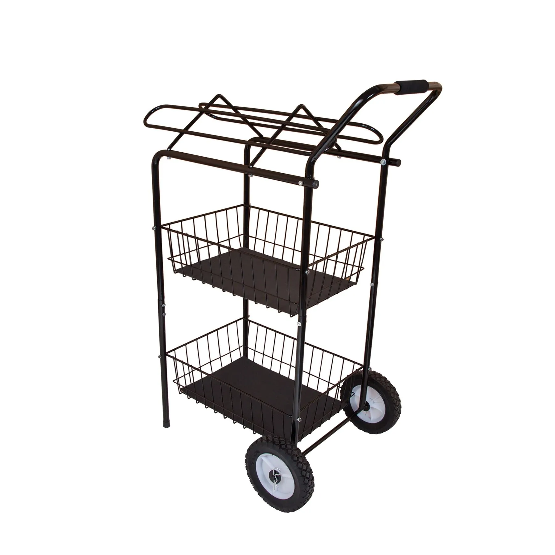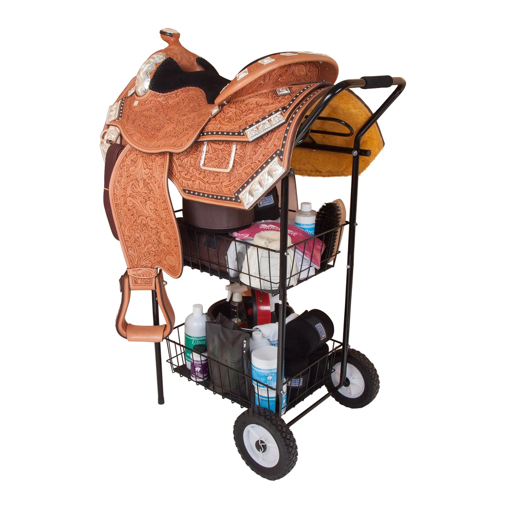 We have the answer to cut down on multiple trips to and from the trailer or tack room. The show cart can be loaded up and hauled, saving steps and energy. The double baskets can carry all of your grooming or bathing supplies, and the saddle rack can easily hold an English or Western saddle.