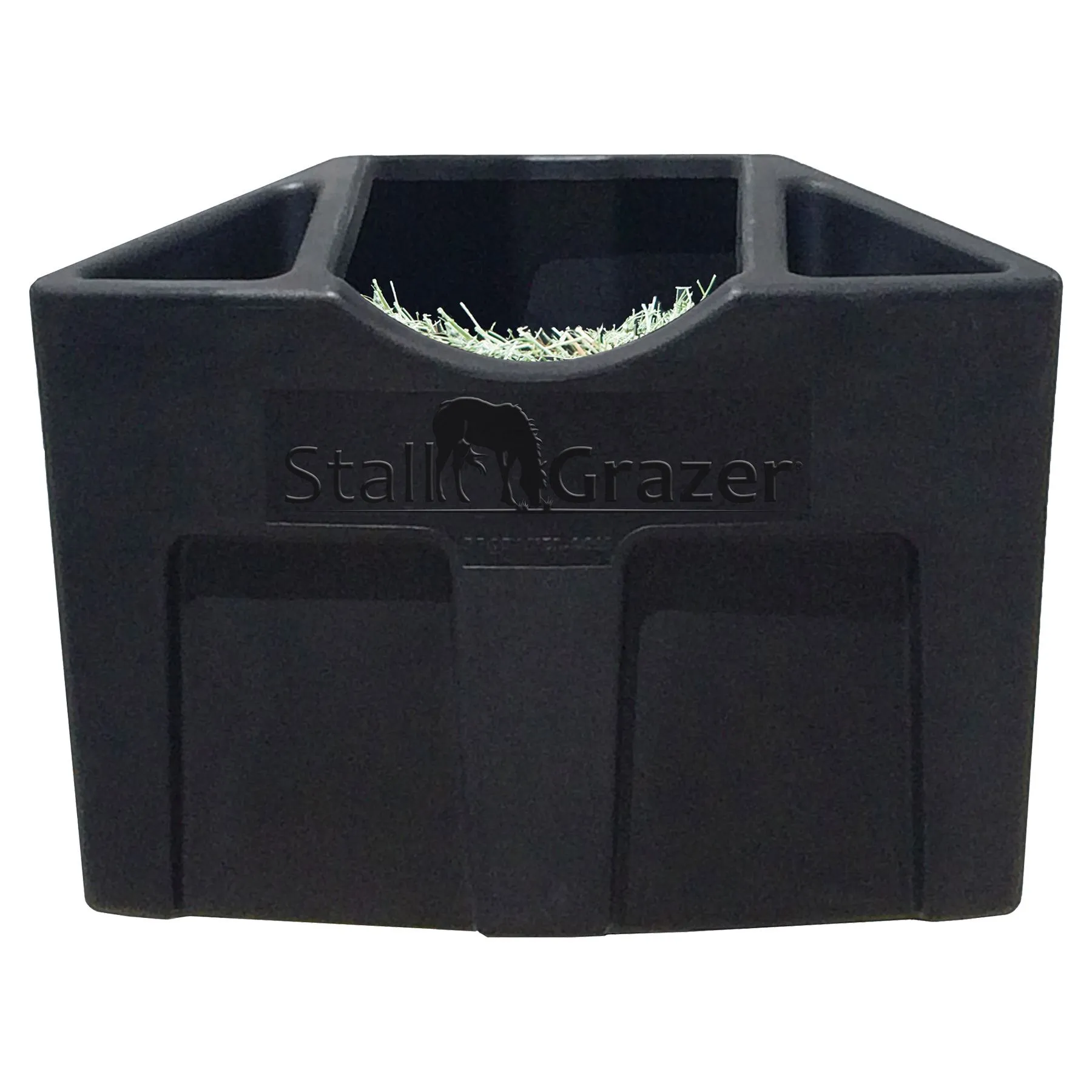 - One-piece molded polyurethane with a large center hay compartment